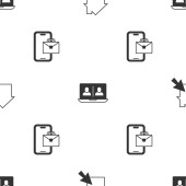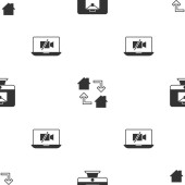 Set Freelancer, Camera and Video chat conference on seamless pattern. Vector