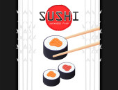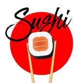 Sushi Logo Chopsticks gospodarstwa sushi roll Japońskie logo żywności