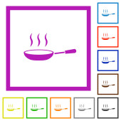 Błyszcząca patelnia parowa płaskie ikony kolorów w kwadratowych ramkach na białym tle