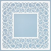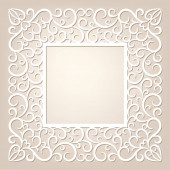 Prostokątna ramka z koronkowym wzorem brzegowym na białym papierze, ozdoba cięta papierem, szablon do cięcia laserowego, dekoracja koronki do projektu karty zaproszenia ślubnego.
