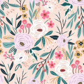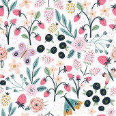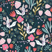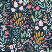 Zdjęcie "Płynny wzór z kwiatami, ptakami, jagodami i liśćmi. Kreatywna kwiatowa faktura. Świetne do tkanin, tkaniny Vector Illustration" może być wykorzystywane do celów osobistych i komercyjnych zgodnie z warunkami zakupionej licencji Royalty-free. Obraz jest dostępny do pobrania w jakości wysokiej rozdzielczości do 5760x3840.