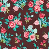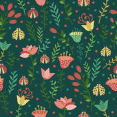 Płynny wzór z kwiatami, jagodami i liśćmi, borówkami. Kreatywna wysokość szczegółowa faktura kwiatowa. Świetne do tkanin, tkaniny Vector Illustration