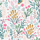 Zdjęcie "Płynny wzór z kwiatami, jagodami i liśćmi, borówkami. Kreatywna wysokość szczegółowa faktura kwiatowa. Świetne do tkanin, tkaniny Vector Illustration" może być wykorzystywane do celów osobistych i komercyjnych zgodnie z warunkami zakupionej licencji Royalty-free. Obraz jest dostępny do pobrania w jakości wysokiej rozdzielczości do 5760x3840.
