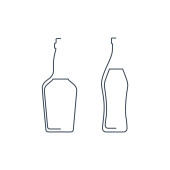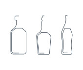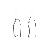 Butelka po piwie i szklanka. Alkoholik na przyjęcia i uroczystości. Proste czarne kształty linii izolowane. Ilustracja na białym tle. Płaski styl projektowania do dowolnych celów.