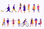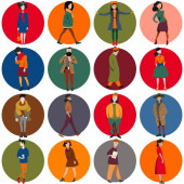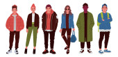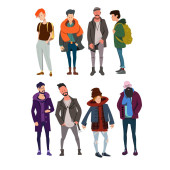 Grupa różnych mężczyzn w różnym wieku stojących razem. Zestaw postaci w strojach ulicznych.