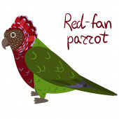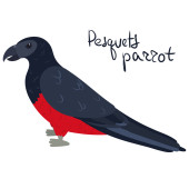 Czarnowłosa papuga w kreskówkowym stylu na białym tle. Pionity melanocephalus.