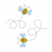 Zdjęcie "Pszczoła postać. Słodkie latające pszczoły z kropkowaną trasą. Ilustracja wektora kreskówki owada. Odizolowane na biało" może być wykorzystywane do celów osobistych i komercyjnych zgodnie z warunkami zakupionej licencji Royalty-free. Obraz jest dostępny do pobrania w jakości wysokiej rozdzielczości do 5760x3840.
