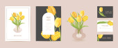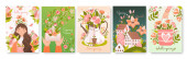 Dzień Matki Piękny zestaw kartek okolicznościowych. Wiosna Szczęśliwy Dzień Matki Holiday Banner z kwiatami