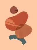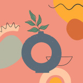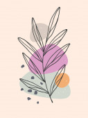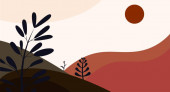 Nowoczesna abstrakcyjna ilustracja wektorowa z wazonami, organicznymi różnymi kształtami i listkami.Boho dekoracja ścienna.Modny projekt artystyczny idealny na banery; media społecznościowe, zaproszenia, okładki, tapety.