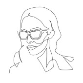 Abstrakcyjna twarz kobiety w kapeluszu. Ciągły rysunek linii.