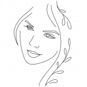 Abstrakcyjna twarz kobiety z kwiatem. Ciągły rysunek linii.