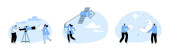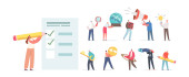 Business Characters Team Collaboration, Working on Project or Creative Idea. Tiny Mężczyzna i Kobieta Pracownicy w Urzędzie