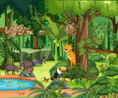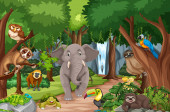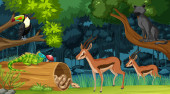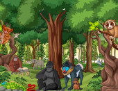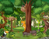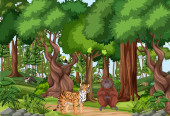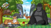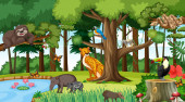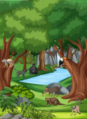 Dzikie zwierzę postać z kreskówki w lesie sceny ilustracji