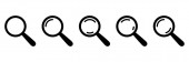 Szukaj ikony. Szklany symbol powiększenia. Ikony internetowe. Wektor izolowany na białym