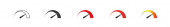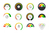Minimalistyczna ikona prędkościomierza. Czarna, liniowa i kolorowa skala ze strzałką. Elementy konstrukcyjne wektora