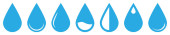 Kolekcja niebieskich kropli wody. Elementy płaskie. Zestaw wektorów