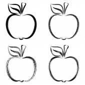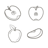 Świeże jabłka w ręcznie rysowane doodle stylu. Całe, połówki, części owocu. Zestaw ilustracji wektorowych izolowanych na białym tle