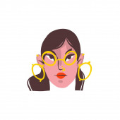 Abstrakcyjny plakat artystyczny z kobietą w okularach przeciwsłonecznych. Plakat sztuki abstrakcyjnej z kobiecą twarzą - usta, nowoczesne okulary przeciwsłoneczne, długie włosy. Współczesny modny portret artystyczny. Abstrakcyjna ilustracja wektora młodej dorosłej kobiety.