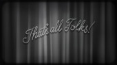 Koniec ekranu z okręgami promieniowymi i typografią. To wszystko ludzie! Vintage sceny retro z liternictwem jak w starych hollywoodzkich filmach