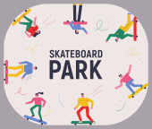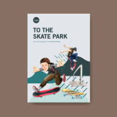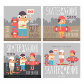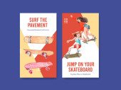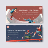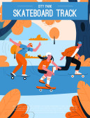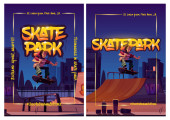 Plakaty z kreskówkami skate parku z młodzieżą skaczącą