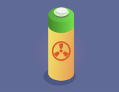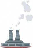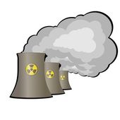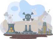 Fabryka z symbolem promieniowania i substancji promieniotwórczych. Elektrownia jądrowa zanieczyszcza powietrze