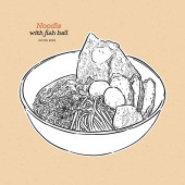 Zdjęcie "Tajski makaron z wieprzowiną, kulą wieprzową, chrupiącą wieprzowiną i zupą z krwi w tradycyjnej miseczce na drewnianym stole i czarnym tle. Ilustracja wektora dla projektu lub wzoru." może być wykorzystywane do celów osobistych i komercyjnych zgodnie z warunkami zakupionej licencji Royalty-free. Obraz jest dostępny do pobrania w jakości wysokiej rozdzielczości do 5760x3840.