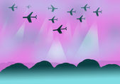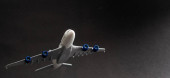 Lądujący samolot. Krajobraz z białym samolotem pasażerskim leci na niebieskim niebie z wielobarwnymi chmurami o zachodzie słońca. Podróże. Samolot pasażerski. Podróż służbowa. Komercyjne statki powietrzne