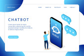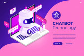 Chatbot technologia strona internetowa szablon strony lądowania gradient 3d izometryczny wektor ilustracja