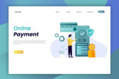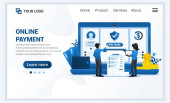 Płatności online dla Twojej firmy Landing Page Szablon z gradientowym tle i izometryczne 3d wektor Ilustracja efekt szkła