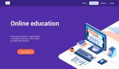 Światowej klasy platforma edukacyjna online Landing Page Template with Gradient Background and Isometric 3d Vector Illustration Mobile User Interface