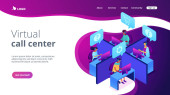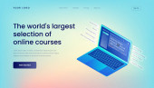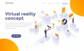 Tworzenie lepszego wirtualnego webinarium ze zintegrowanymi rozwiązaniami Szablon strony lądowania z gradientowym tle i Izometryczny wektor 3d Ilustracja mobilny pulpit Interfejs użytkownika sieci Web Responsive