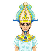 Animacja portret Egipcjanina w koronie. Boże Ozyrysie. Ilustracja wektora odizolowana na białym tle. Nadruk, plakat, t-shirt, tatuaż.