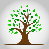 Drzewo z liśćmi. Szablon do projektowania logo, odznaki, naklejki i logo dla Twojej firmy. Rośliny, przyroda i ekologia. Płaski styl. Wektor