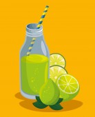 Dzbanek lemoniady z kawałkami cytrusów i lodu. W pobli? u ca? y owoc z liściem. Sztuka liniowa w płaskim stylu. Ilustracja napojów w restauracji. Cytryna z schłodzonym sokiem. Ikona konturu izolowana na białym tle