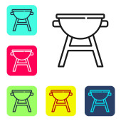Czarna linia Grill grill ikona izolowane na białym tle. Grillowa impreza. Ustaw ikony w kolorach przycisków okręgu. Ilustracja wektora.