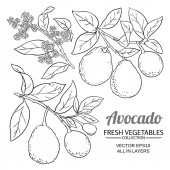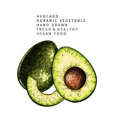 Ręcznie narysowana połowa i pokrojona awokado. Wektor kolorowe grawerowane ilustracji. Naturalne organiczne warzywa. Zdrowy składnik żywności. Do gotowania, projektowania opakowań kosmetycznych, ziół leczniczych, leczenia, opieki zdrowotnej