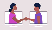 Zdjęcie "Ilustracja wideokonferencji, rozmowy wideo do znajomego, nauka online, spotkanie biznesowe. Kolorowe płaski wektor ilustracji." może być wykorzystywane do celów osobistych i komercyjnych zgodnie z warunkami zakupionej licencji Royalty-free. Obraz jest dostępny do pobrania w jakości wysokiej rozdzielczości do 5760x3840.