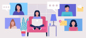 Zdjęcie "Ilustracja wideokonferencji, rozmowy wideo do znajomego, nauka online, spotkanie biznesowe. Kolorowe płaski wektor ilustracji." może być wykorzystywane do celów osobistych i komercyjnych zgodnie z warunkami zakupionej licencji Royalty-free. Obraz jest dostępny do pobrania w jakości wysokiej rozdzielczości do 5760x3840.