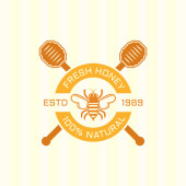 Symbol wektora miodu i pszczelarstwa, odznaka, etykieta lub logo w monochromatycznym stylu odizolowane na białym tle