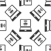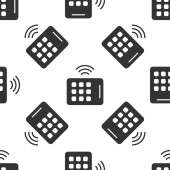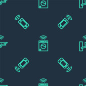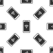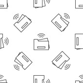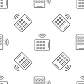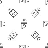 Szara linia Inteligentny system mikrofalowy ikona odizolowany bezproblemowy wzór na białym tle. Ikona urządzeń gospodarstwa domowego. Internet rzeczy koncepcja z bezprzewodowym połączeniem. Wektor.