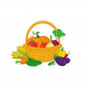 kosz z owocami, takimi jak truskawki winogrona śliwka bananowa cytryna brzoskwinia z gruszki pomarańczowej. Ilustracja wektora izolowana na białym tle.