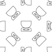 Szara linia Ikona lampy stołowej odizolowany bezszwowy wzór na białym tle. Lampa biurkowa. Wektor