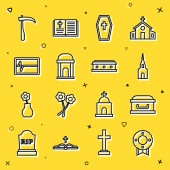 Zdjęcie "Zestaw wypełnionych ikon pogrzebowych 8, ilustracja wektorowa" może być wykorzystywane do celów osobistych i komercyjnych zgodnie z warunkami zakupionej licencji Royalty-free. Obraz jest dostępny do pobrania w jakości wysokiej rozdzielczości do 5760x3840.