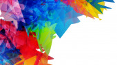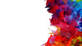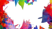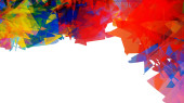 Streszczenie jasny kolorowy szablon z wielobocznych losowych kształtów na białym tle. Kolce koloru tworzą artystyczną granicę. Nowoczesna minimalna geometryczna konstrukcja banera.