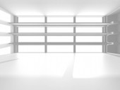 Oświetlone wnętrze korytarza. Wnętrze pustego pokoju. Renderowanie 3D