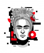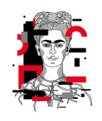 Linie wektorowe klasyczne ręcznie rysowane ilustracji. Frida Kahlo.