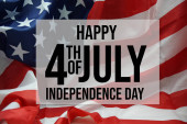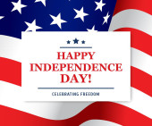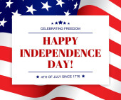 Szczęśliwego Dnia Niepodległości kartka z życzeniami, usa machająca flagą. Plakat Stanów Zjednoczonych Ameryki z typografią na tle gwiazd i pasków. Czwarty lipiec Amerykańskie święto patriotyczne
