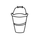 czarny minimalistyczny wektor ikona rozprysku cieczy od kubka do wiadra
