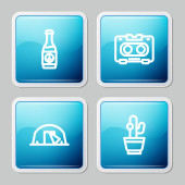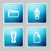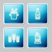 Zestaw linii Szklanka piwa, butelki piwa w wiadrze lodu, menu i ikona. Wektor