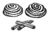 Zdjęcie "Szkice chleba z długimi bochenkami chleba, bagietką, chlebem pszennym i żytnim, rogalikiem. Wyroby piekarnicze i cukiernicze w stylu vintage grawerowania do projektowania żywności. Ilustracja wektora szkicu" może być wykorzystywane do celów osobistych i komercyjnych zgodnie z warunkami zakupionej licencji Royalty-free. Obraz jest dostępny do pobrania w jakości wysokiej rozdzielczości do 5760x3840.